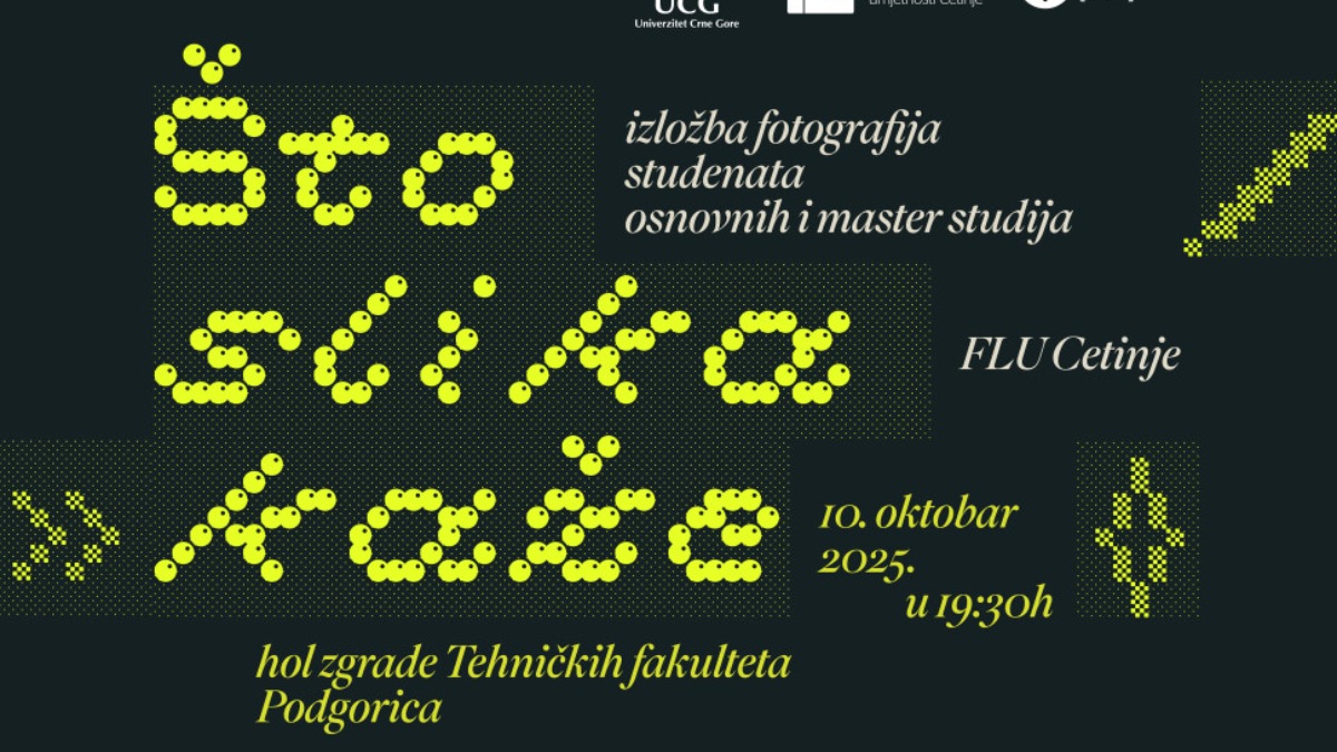 Izložba fotografija studenata Fakulteta likovnih umjetnosti Cetinje Gore pod nazivom „Što slika kaže“ biće otvorena 10. oktobra u 19.30 sati u holu tehničkih fakulteta, u okviru programa Festivala umjetnosti nauke i kulture, koji realizuje Univerzitet Crne Gore.