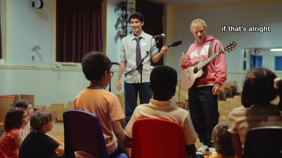 Sheeran je zatim djeci objasnio osnovne ritmove valcera i 4/4 takta, koristeći primer pjesme Taylor Swift – “Style”, dok su deca pljeskala i tapkala u ritmu. Zatim je svako dijete imalo priliku da priđe mikrofonu i izgovori neku smješnu rečenicu, koju je Sheeran odmah ubacio u loop i pretvorio u ritmičku podlogu — na oduševljenje nastavnika, koji su pohvalili njegovu „pedagošku“ sposobnost.