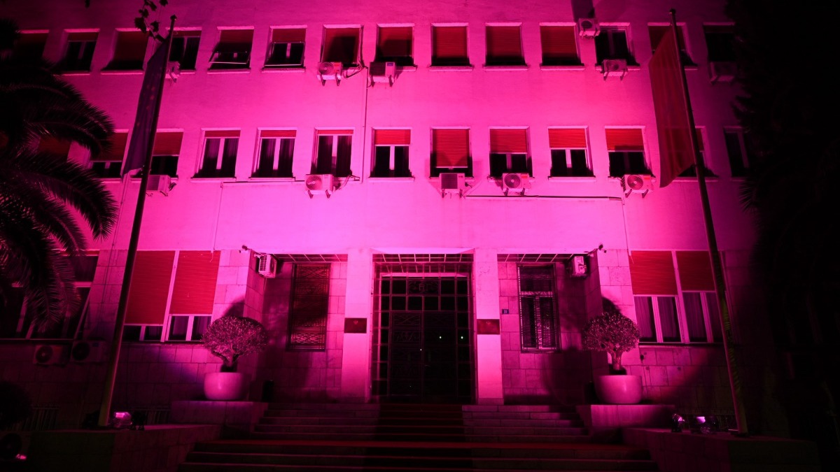 Povodom obilježavanja Ružičastog oktobra - mjeseca prevencije protiv karcinoma dojke, zgrada Skupštine Crne Gore simbolično je večeras osvijetljena ružičastom bojom.
