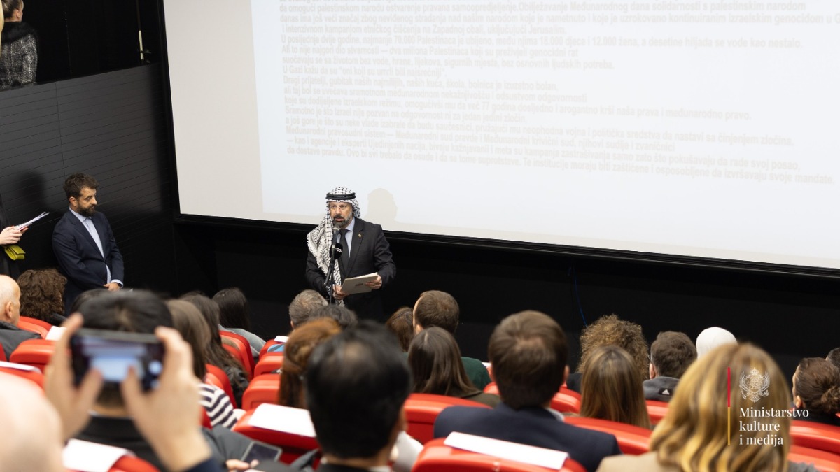 Izraelska nekažnjivost produbljuje patnju i udaljava svijet od pravednog i trajnog mira, kazao je ambasador palestine u Crnoj Gori Rabi Alhantouli povodom Međunarodnog dana solidarnosti sa palestinskim narodom. Ministarka kulture i medija Crne Gore Tamara Vujović je podsjetila da Crna Gora dosljedno afirmiše politiku mira, dijaloga i poštovanja međunarodnog prava.