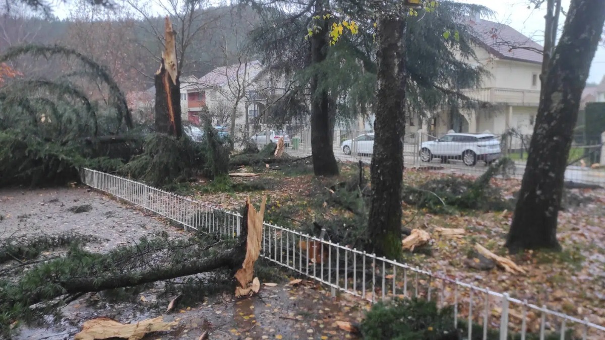 Tokom minule noći grom je udario u stablo koje se nalazi u dvorištu Osnovne škole „Mileva Lajović Lalatović“ u Nikšiću, i tom prilikom napravljena je manja šteta na dijelu krovne konstrukcije objekta, a polomljen je i jedan prozor.