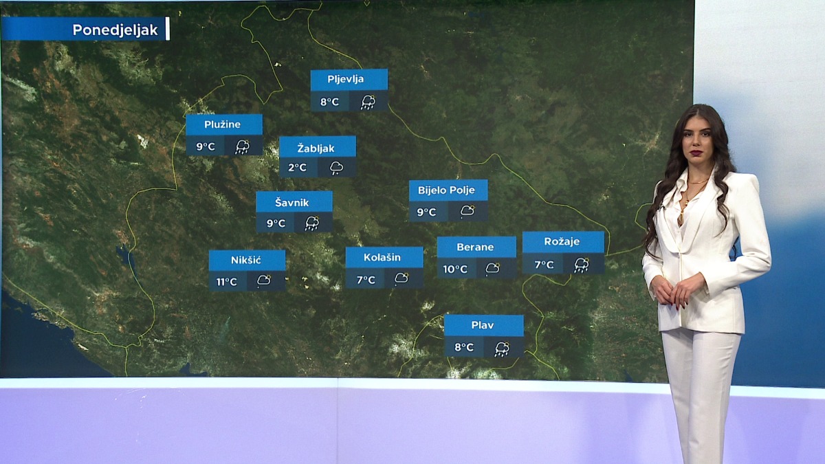 Na sjeveru sjutra pretežno oblačno, povremeno sa slabom kišom, a u višim planinskim predjelima susnježicom ili slabim snijegom. Vjetar umjeren do jak, sjeverni. Temperatura do 11 stepeni.