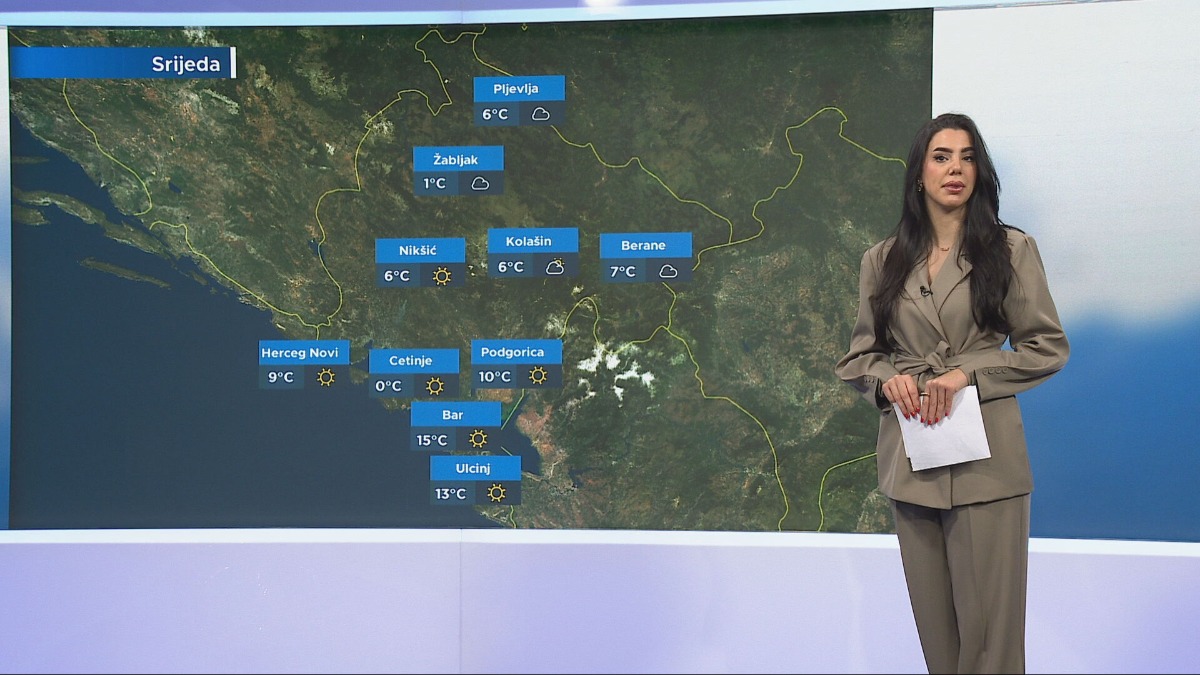 Prema podacima Zavoda za hidrometeorologiju i seizmologiju od 7 sati u Crnoj Gori je pretežno sunčano, na sjeveru ima magle i povećane niske oblačnosti. Vjetar je slab do umjeren, na jugoistoku pojačan, sjevernih smjerova. Temperatura vazduha kreće se od 0 stepeni na Cetinju do 15 stepeni u Baru. Danas najviša dnevna temperatura vazduha u porastu.