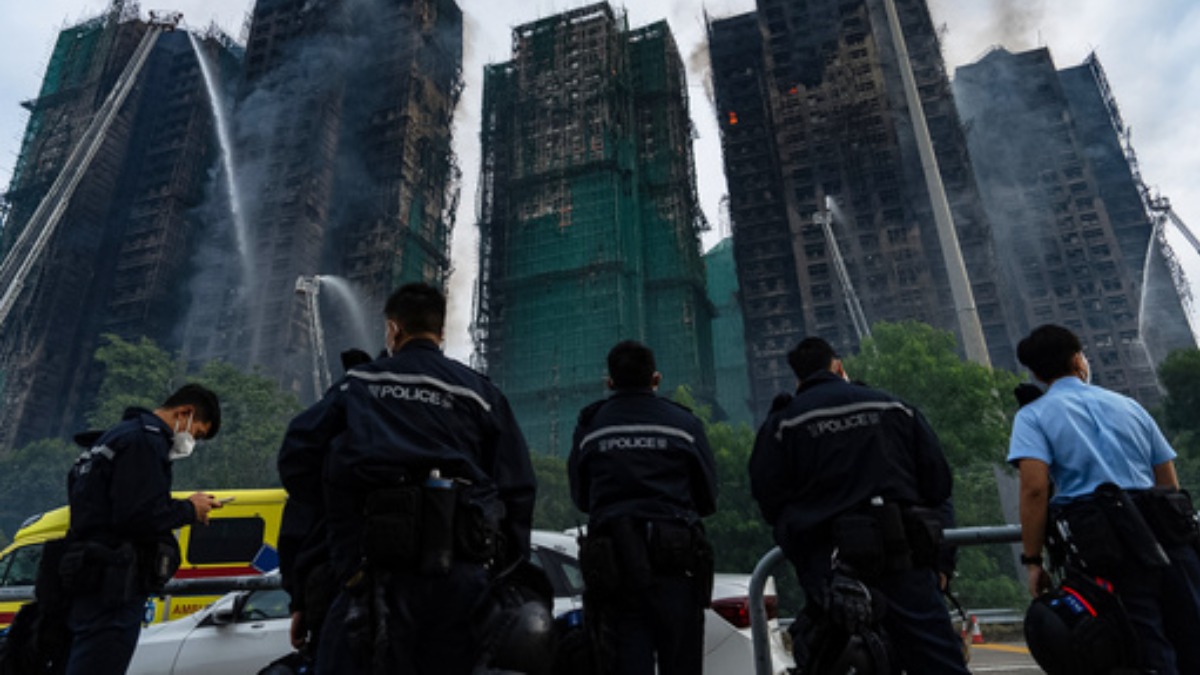 Vatrogasci pokušavaju da kontrolišu požar od juče popodne, kada je izbio na bambusovim skelama i građevinskoj mreži, a zatim se proširio na sedam od osam zgrada kompleksa.